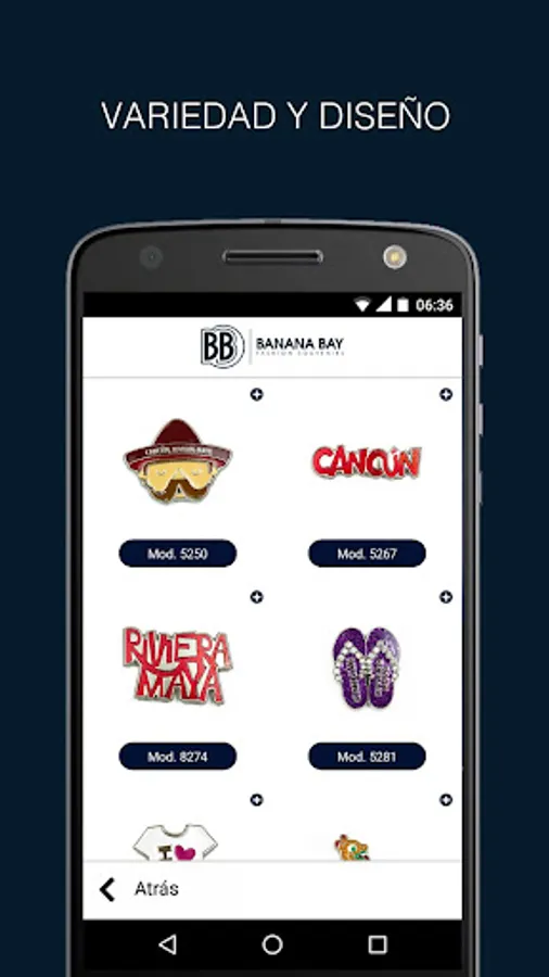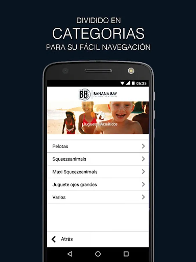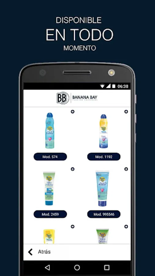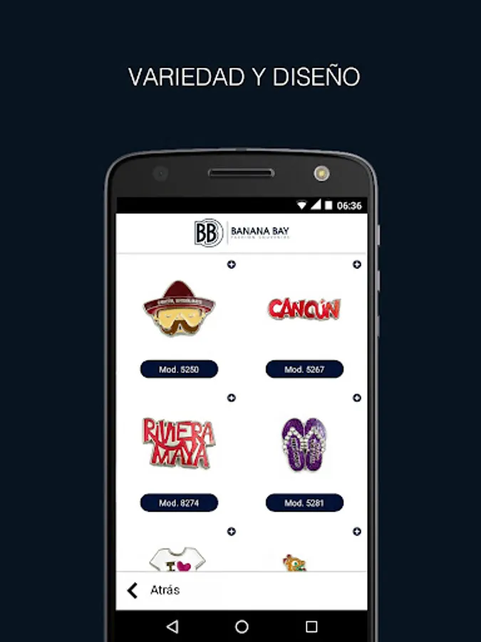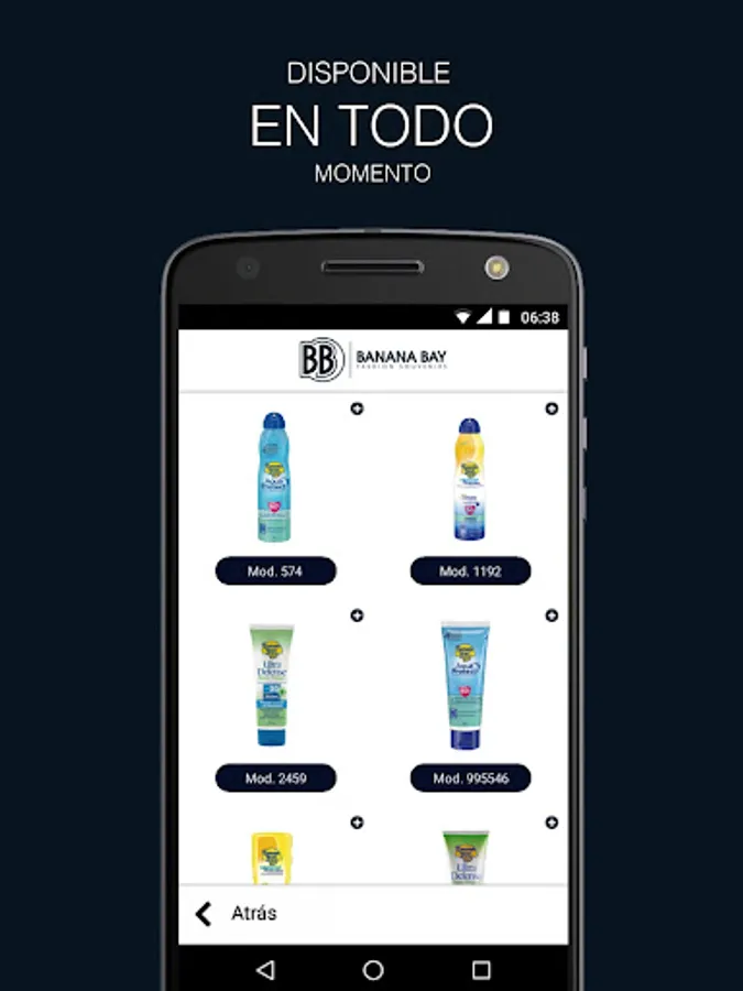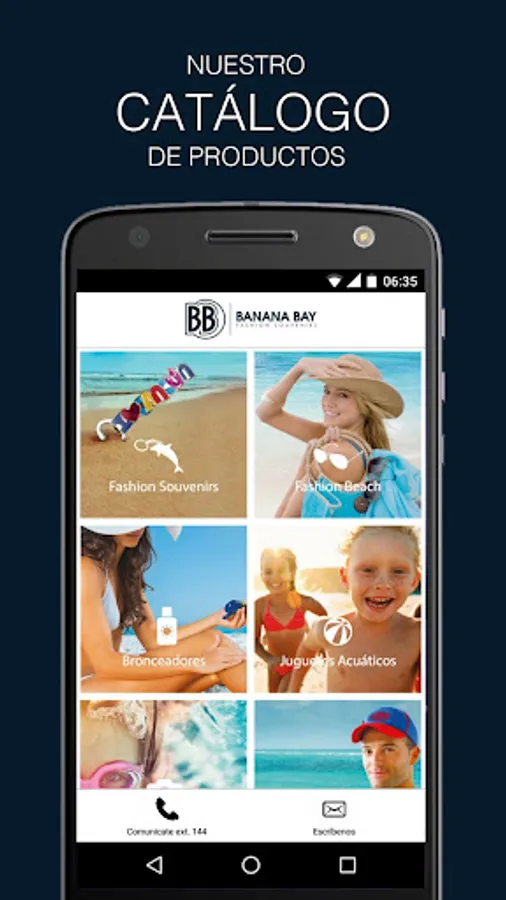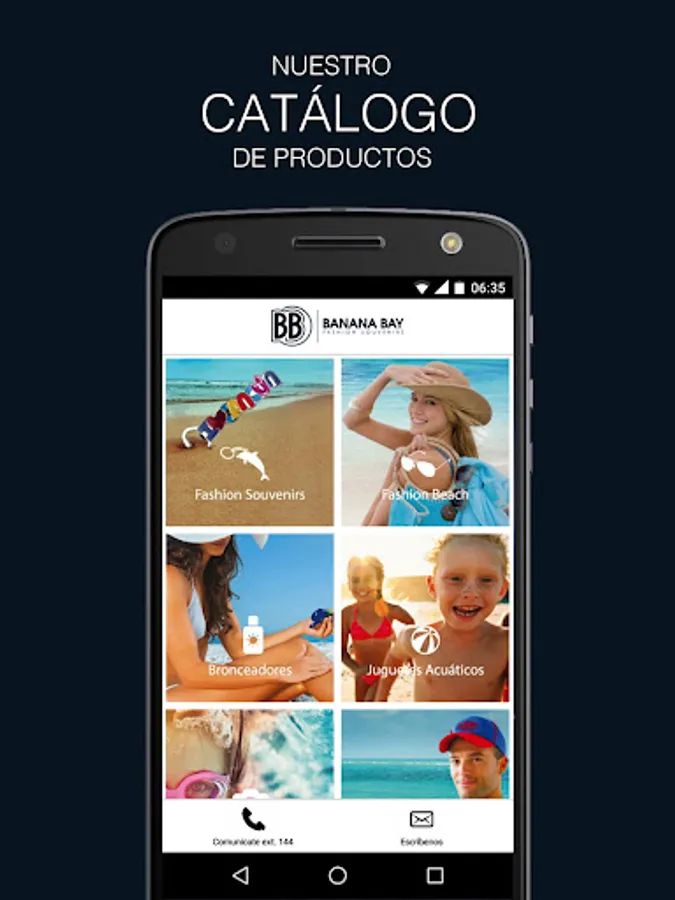 The application of Banana Bay is a catalog of all our products, where you can browse through our categories Souvenirs Fashion, Fashion Beach, Blockers, water toys, cameras and caps. You will find a detailed description and model number so you can place your order via phone or email.