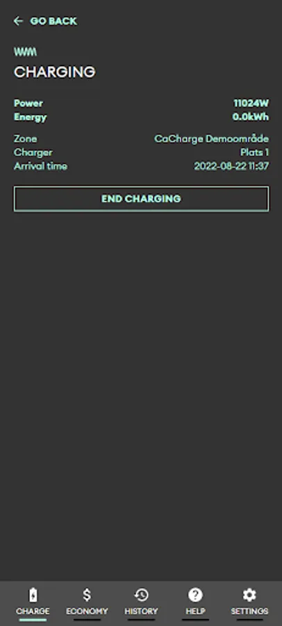 * Function as a dashboard for starting and monitoring electrical charging