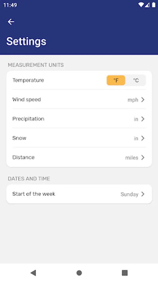 • Ability to customize units of measurement (e.g. Fahrenheit or Celsius)