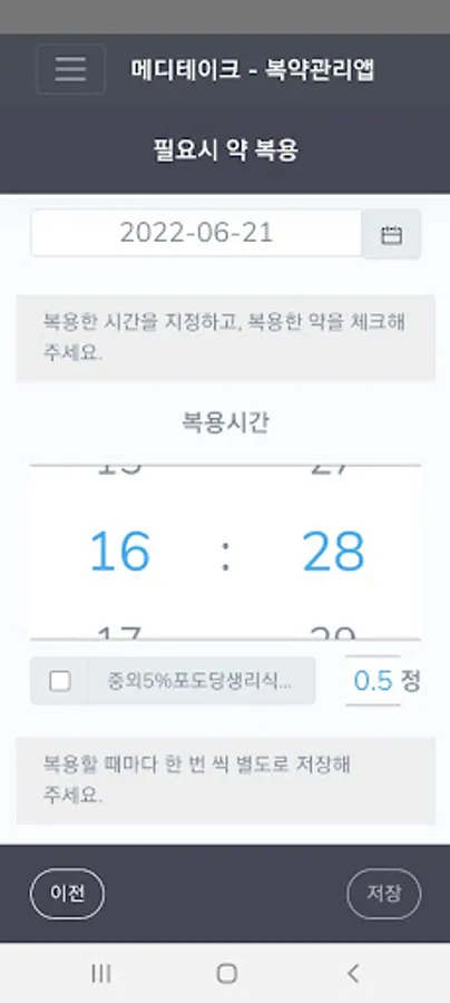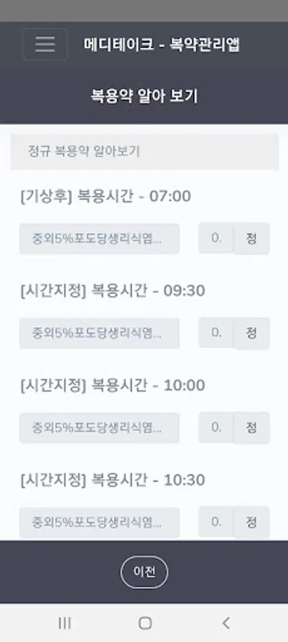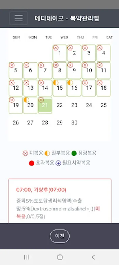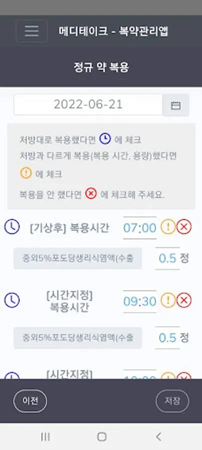 - You will receive a medication alarm and notification message according to the doctor's prescription, and take medication according to the alarm and notification, and enter the medication record through the application.