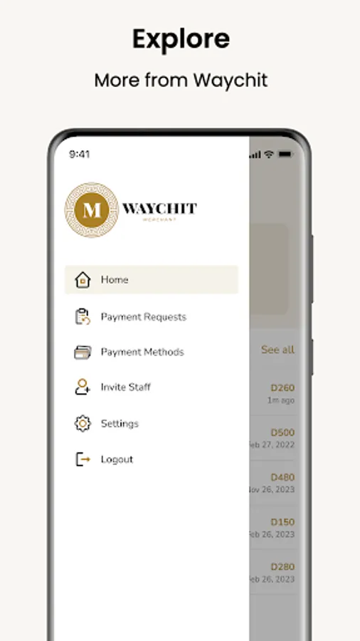 With Waychit Merchant, you can easily and securely accept payments from your customers using their preferred payment method, whether it's a mobile wallet, debit card, or credit card. Our app is designed with simplicity and ease of use in mind, so you can focus on what really matters - your business.