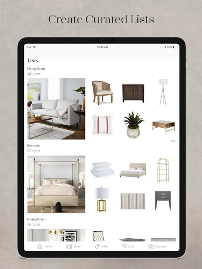 - Browse thousands of shoppable rooms – living rooms, bedrooms, bathrooms, kitchens, and more.