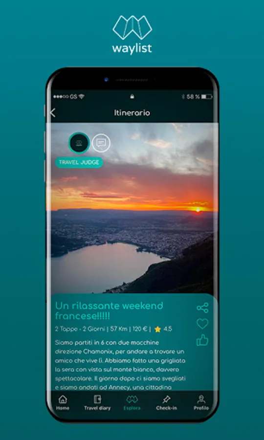 The first search engine for travel itineraries. A vast database of destinations, routes and tourist destinations tailored for you according to your needs, your budget, the period and the activities you love the most, available from all your devices. You will also be able to tell about your travels and make them available to the whole community, earning credits that you can convert into discounts for extraordinary travel experiences.