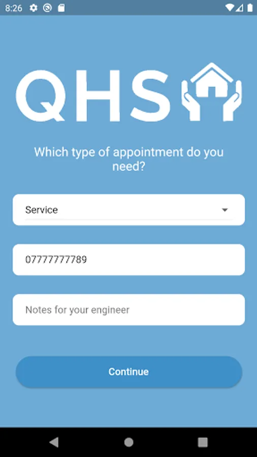Appointment booking app to allow Quality Heating Services customers to book a repair job or reschedule their annual service to a more convenient date
