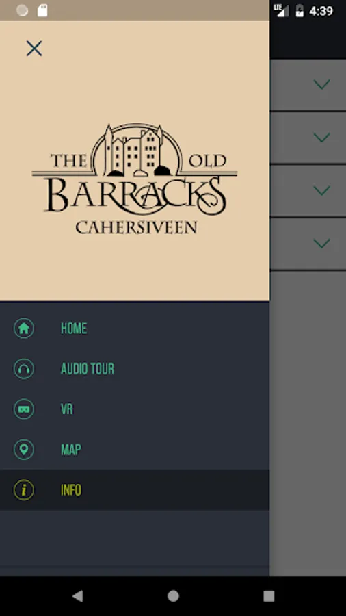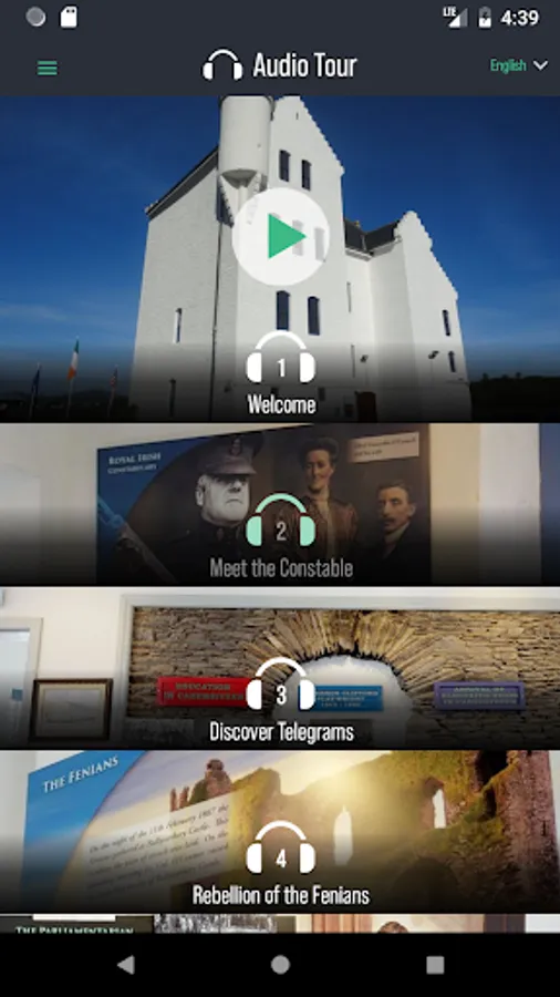Audio trail encompassing all rooms of the exhibition available in 5 languages - English, Irish, French, German and Dutch. Virtual tour of the exhibition allowing users to explore the entire exhibition through the app.