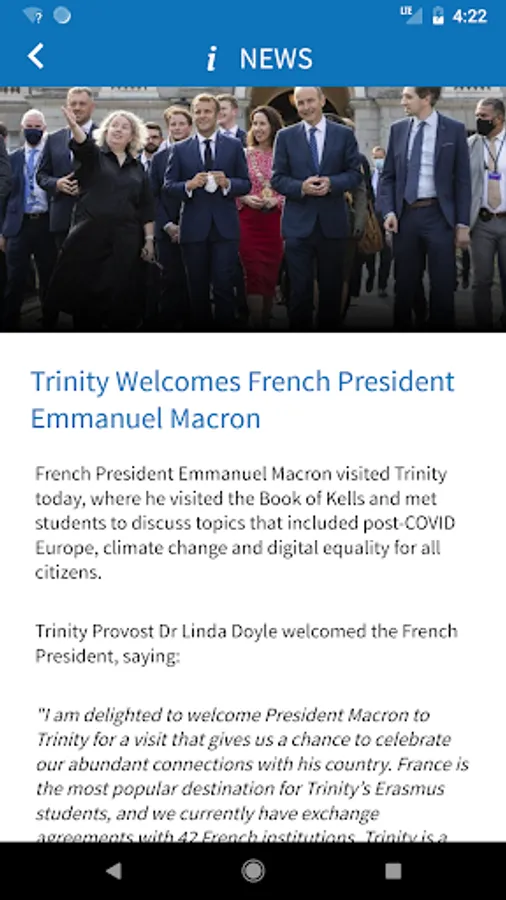 Trinity College Dublin is Ireland’s leading University. Located in the heart of Dublin City Centre, the 47 acre University campus is filled with leafy, cobblestone squares and iconic architecture.Download the Visit Trinity App and get access to immersive walking tours and audio guides that bring the fascinating heritage of Trinity College to life.Explore Trinity’s ancient buildings, unearth its hidden gems, learn about famous past students and get insight in to Trinity’s world renowned research and innovation.The Visit Trinity App includes everything you need to know about visiting Trinity College, with up to date information on accommodation, visitor experiences and dining on campus.Get exclusive access to special offers and discounts and use the app to get the most out of your visit to Trinity.