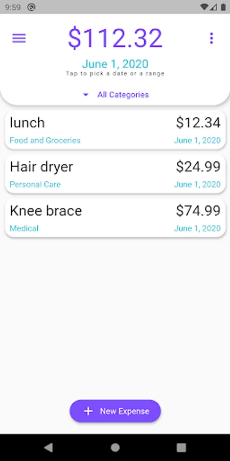 You can view your spending habits daily, weekly, monthly or any date range you like. Several common categories are preloaded in the app, but you can also create custom categories as well.