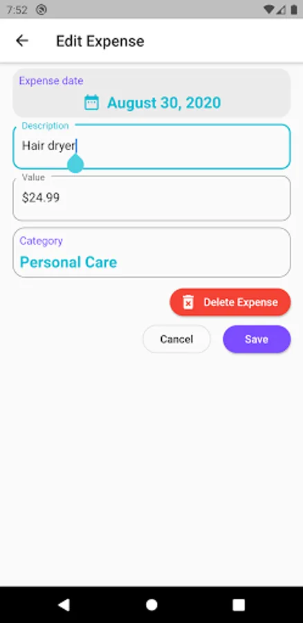 Daily Expense Tracker allows you to input and evaluate where you spend your money! Unlike a budget app, this application tracks the category and amount that you spend on items each day.