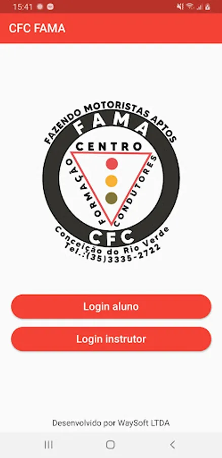 Application for consultations of students and instructors of CFC FAMA in Conceição do Rio Verde - MG, developed by WaySoft Informática LTDA