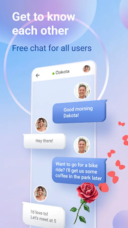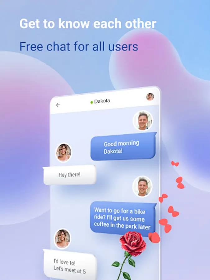 You fell in love at first sight and don't want to wait for the other person to send you a like? We don't limit you to communicating only with people who have liked you, so feel free to text anyone you're interested in.