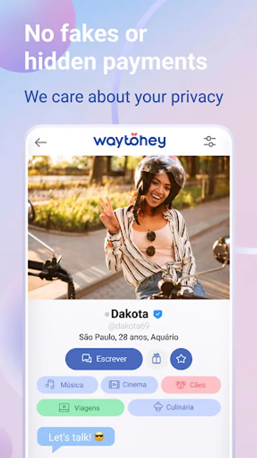 Your happiness is in your own hands, so don't hesitate, install WayToHey and start dating! Meet new people, make friends, find love, or just find people to chat with and have a great time with WayToHey!
