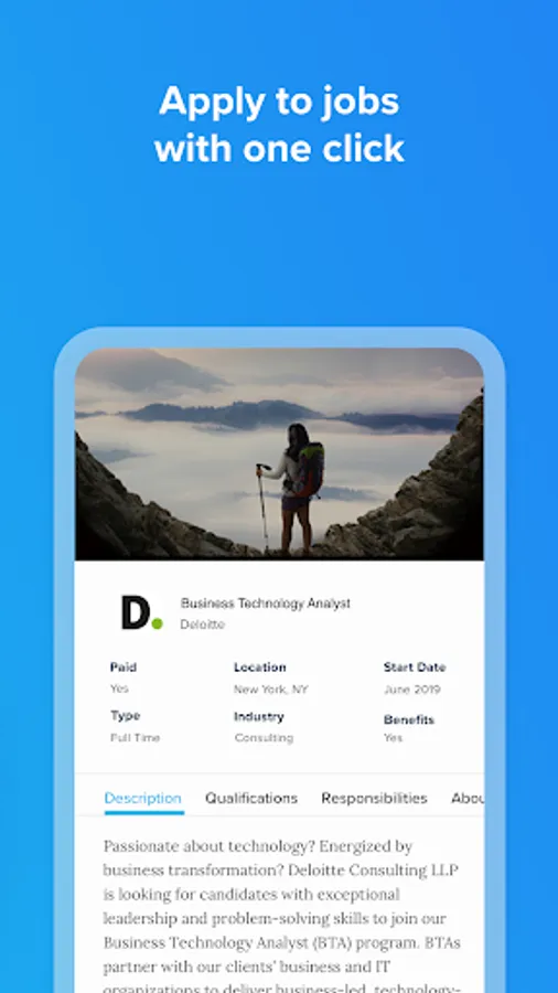 • Search, filter, and apply for any job or internship by location, industry, job type, and more.