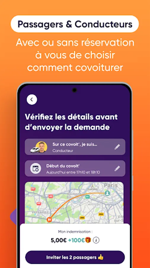 • Always arrive on time: in order to save you travel time, the application combines the best of carpooling with the best of the public transport network,