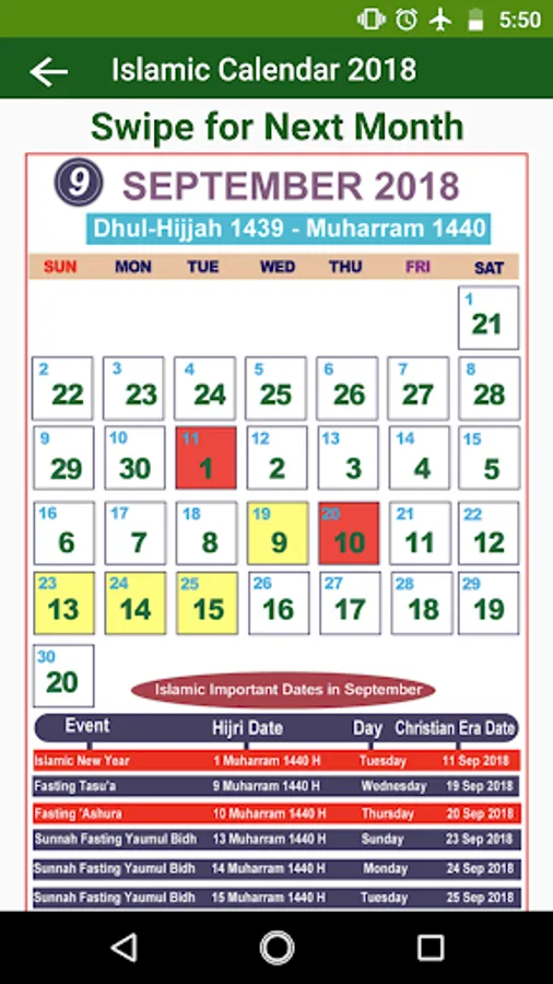 All New Islamic Calendar 2019 (Hijri) brings you current Islamic calendar based on lunar Hijri calendar and also Gregorian dates