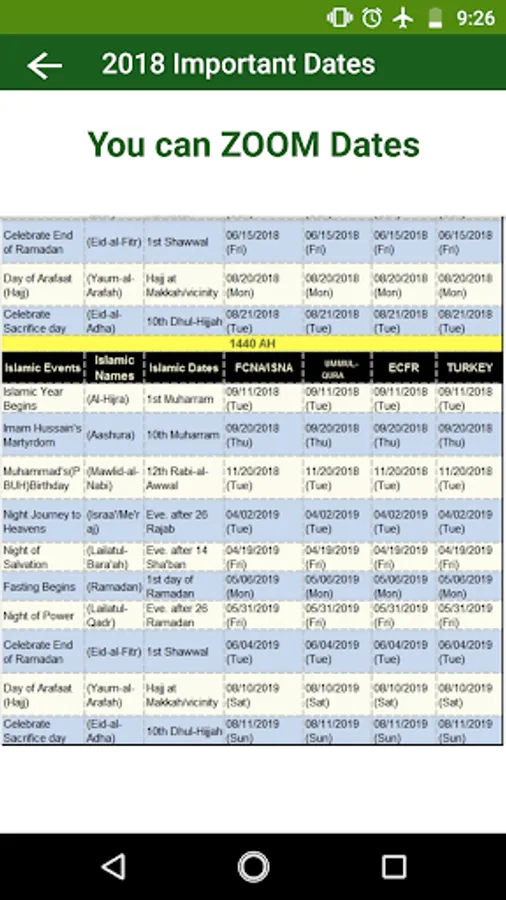 Also there will be important DATES based on Hijri year, Islamic festivals