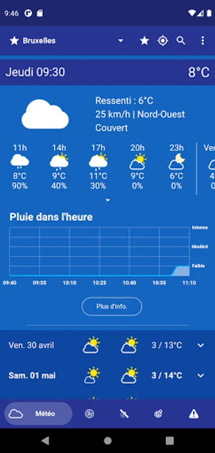 Consultez automatiquement les prévisions de votre localité, où que vous soyez en Belgique ! Vous pouvez également choisir manuellement une commune de votre choix