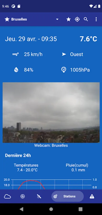 Les relevés de nos stations météo en temps réel ainsi que nos webcams pour la Belgique