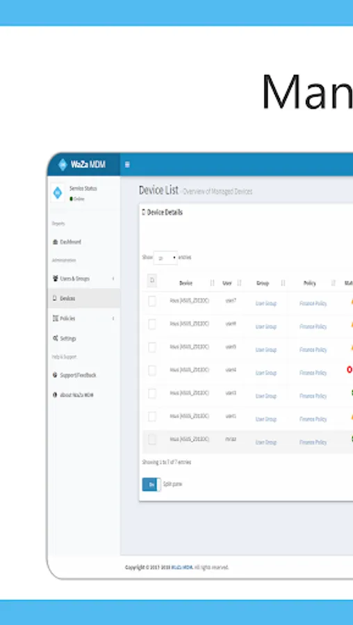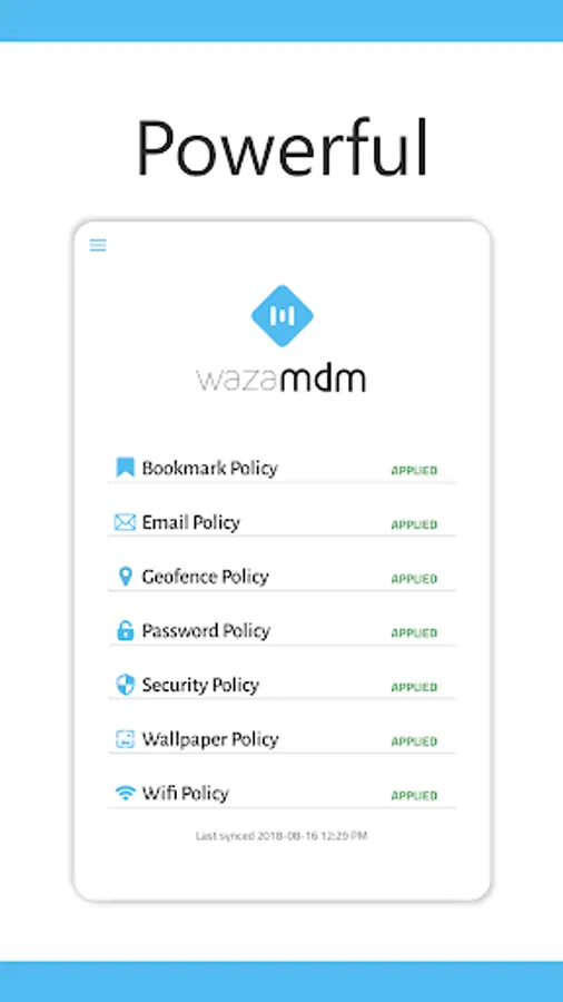User-friendly & secure mobile device management solution to help you configure, manage and track your mobile devices. With WaZa MDM hassle-free setup, get up and running with managing your mobile devices in minutes.