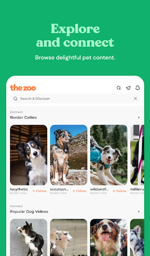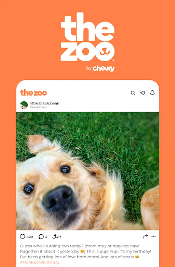 CREATE a profile of your pet and SHARE pics & videos with your Zoo friends.