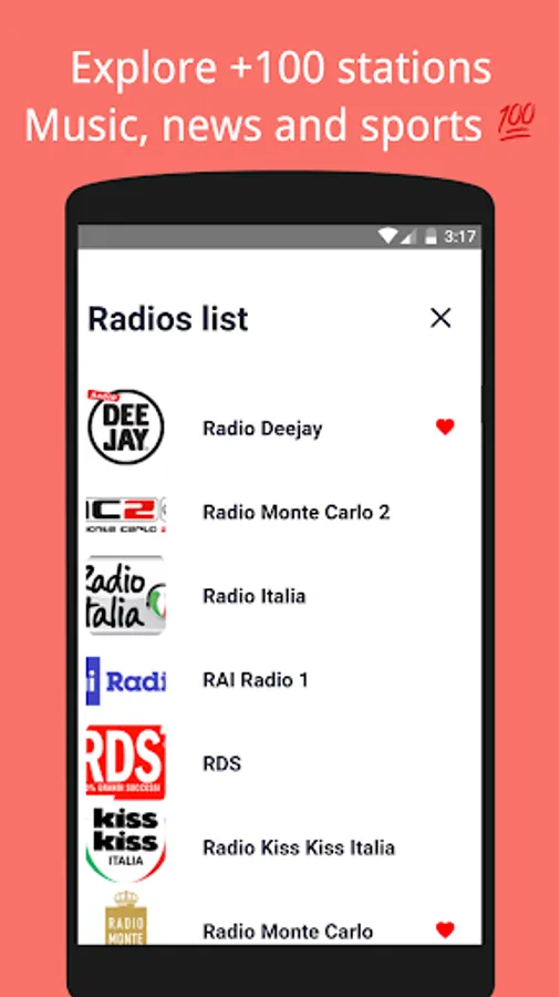 Radio Italy is a free radio app with all Italy's radio stations. With a modern, beautiful and easy to use interface. RI gives you the best experience when it comes to listening to FM radio and internet radio.