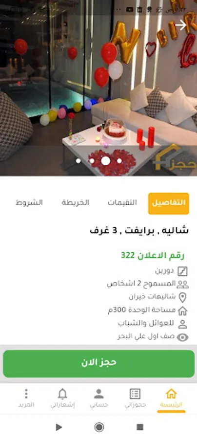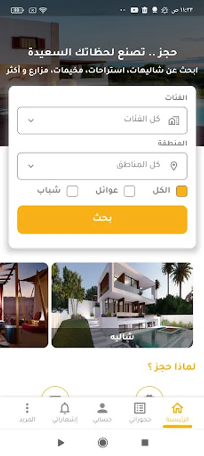 تطبيق حجز لحجز شاليهات، استراحات، مخيمات، مزارع و أكثر