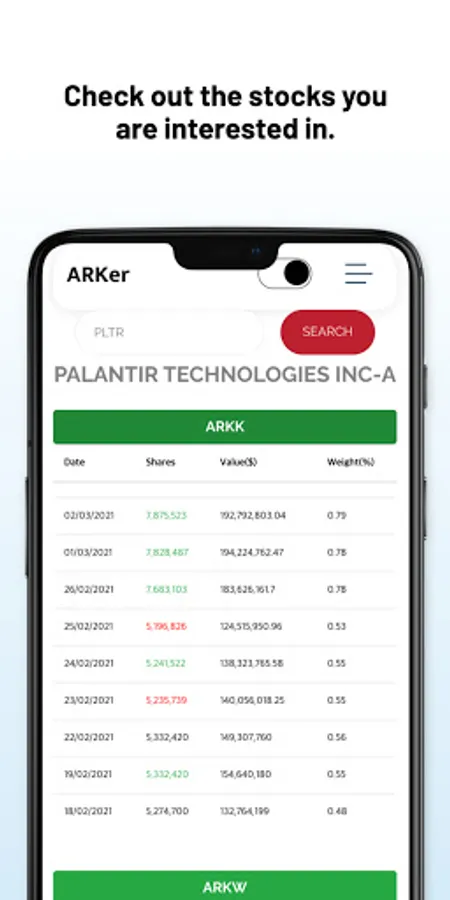 You can check the daily trading information of all individual stocks trading in ARKK, ARKW, ARKQ, ARKG, ARKF ETF.