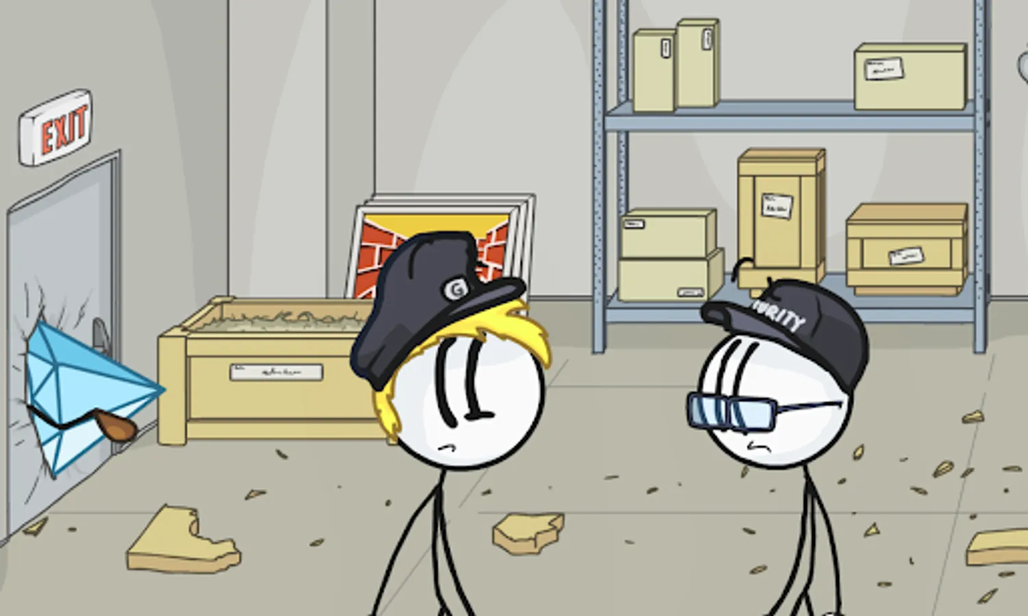 The huge famous diamond is at exhibition. That looks like a great opportunity in town. Help stickmin come out with a plan to get the diamond, would you? Use traditional tools and cutting edge technology or even alien technology!