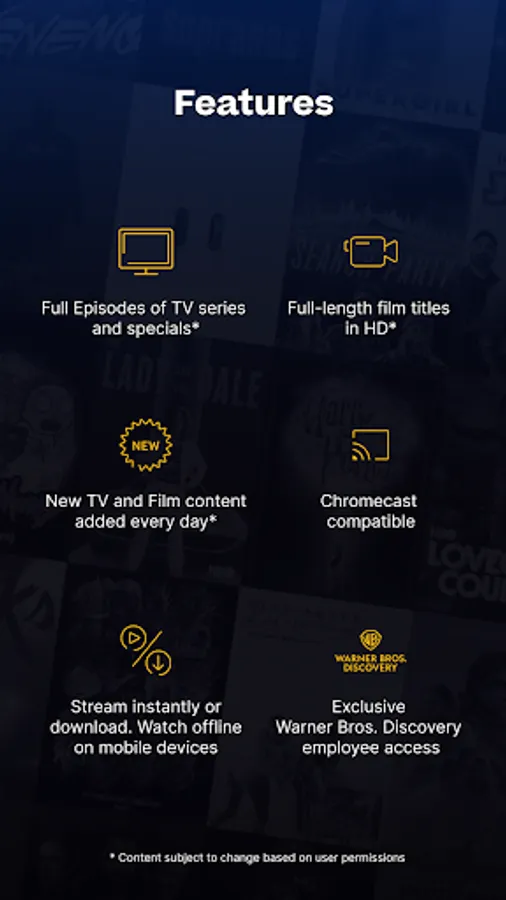 Warner Bros. Discovery Screeners app allows authorized Warner Bros. Discovery Partners, Clients, and Employee the ability to preview and download or stream Warner Bros. Discovery TV and Film content. Pre-authorization from a Warner Bros. Discovery Contact, and a login credentials are required to use the app.