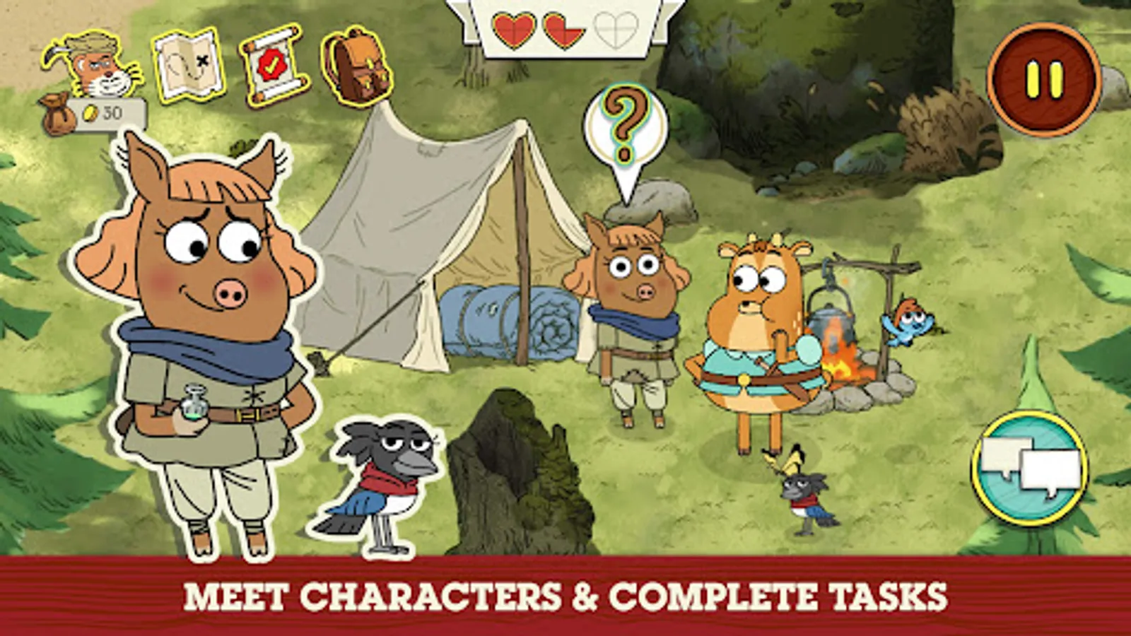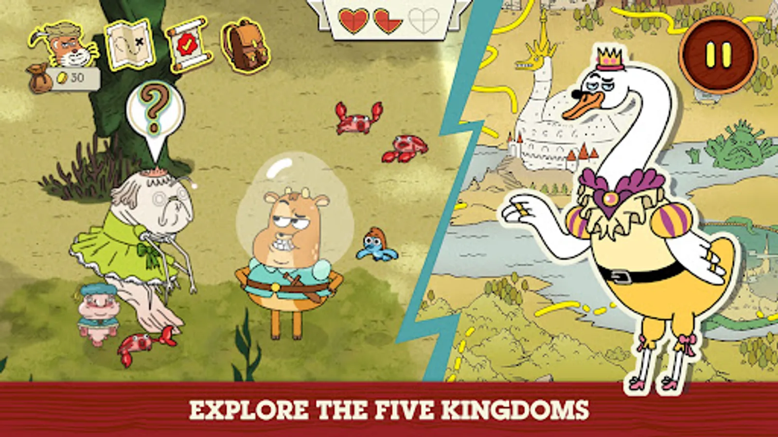 Adventure through forests and swamps, villages and castles, battling flying snakes and venomous plants, duelling evil beasties, and completing perilous challenges. Meet whimsical characters as you explore and collect items to help you on your daring adventures. Be brave, be silly and most importantly... Quest On!