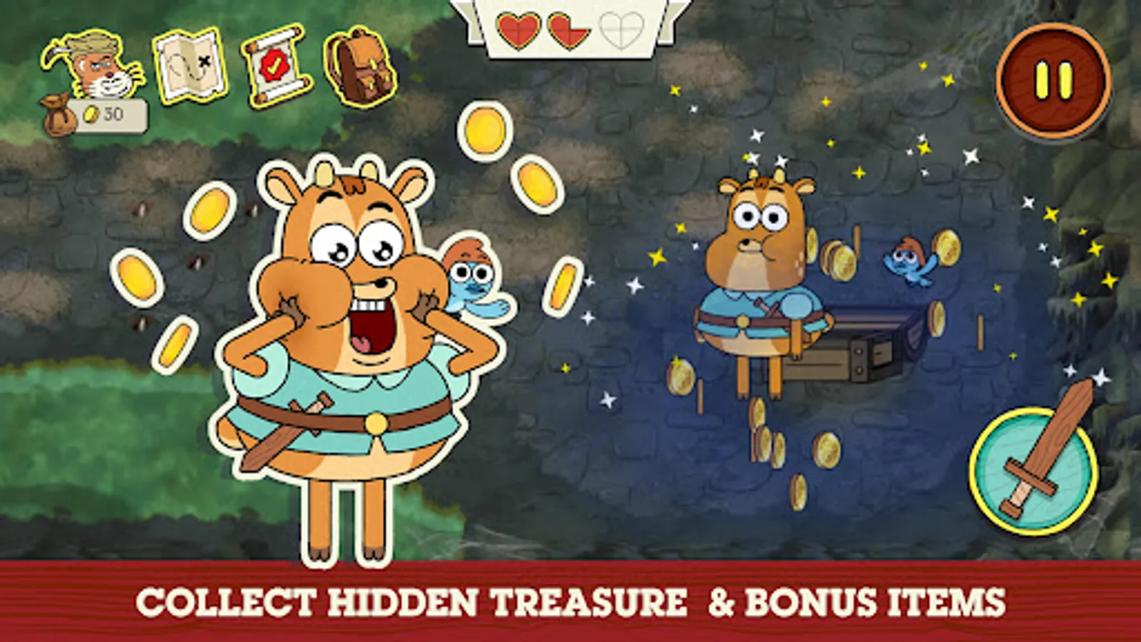 - Unlock secret caves and find treasure chests.