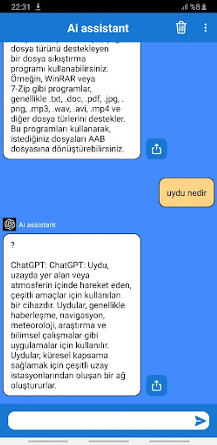 Unlimited use of smart application in your pocket, ask what you want, examine the answer, then ask the details again, learn everything, then apply it, success is yours. Advanced technology with artificial intelligence understands your questions and produces human-like answers, making you feel like you are chatting with a knowledgeable friend. provides. He may even recommend a book to read or a movie to watch! Just ASK US .