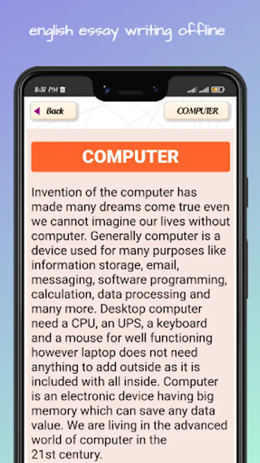 This essay writing app in english offline provides best Quality of more uses english essays.