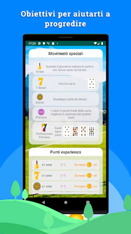 Scopa: Playing cards in turn. More beautiful and fun. Playing has increased in skill by gaining experience points. It can also be used as an attention test. Anyone, regardless of age, can solve puzzles.