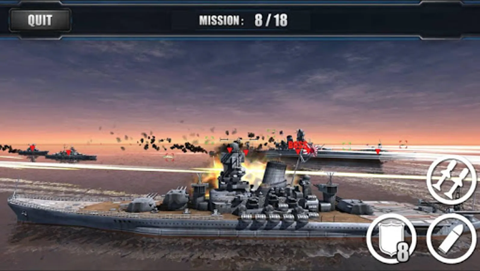 World Warships Combat is a battleship shooting game with several types of military ships fulfilling different roles.
