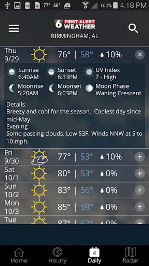 The WBRC Mobile Weather App includes: