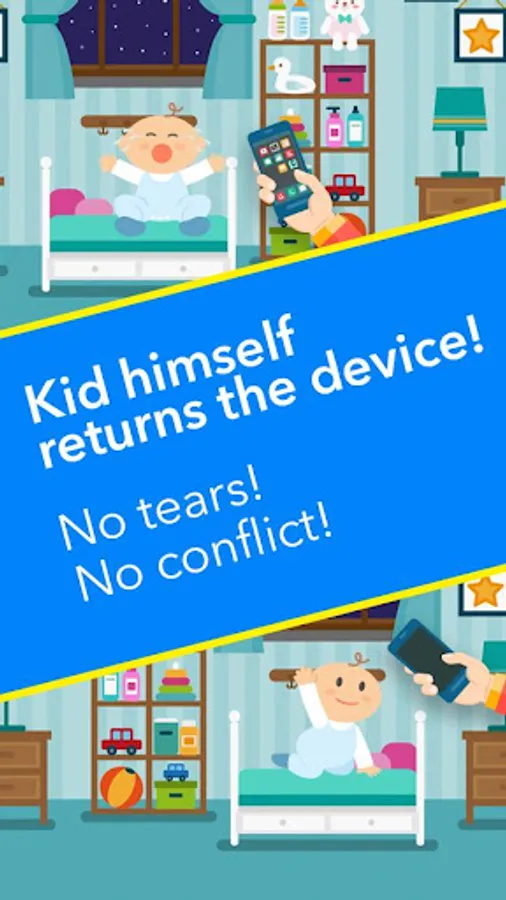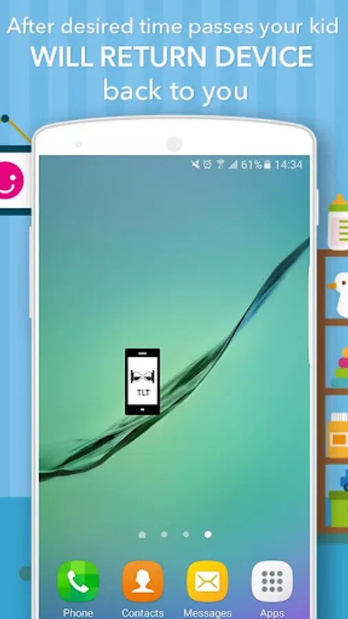 The app simulates a drained battery once the timer ends and doesn’t react to your toddlers’ typical actions so the child will return the device back believing that it needs to be recharged. No tears, no blame and no arguing! As the parent, you can easily unlock your device by either the set knock-code within TLT or with just a simple incoming call!