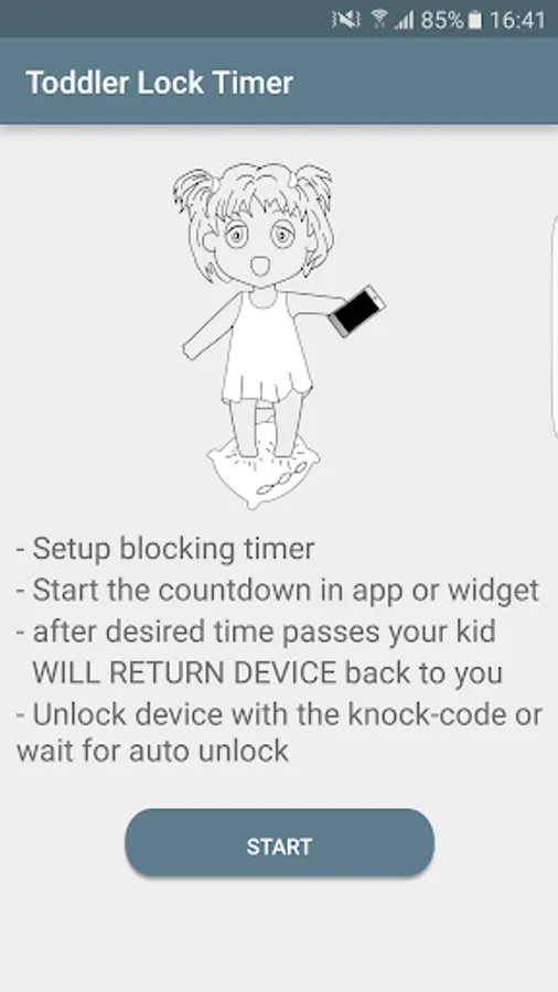 Toddler Lock Timer has been developed for toddlers who do not have the knowledge of restarting the device before the timer is complete. If this becomes a problem, we recommend setting a lock pin on your phone in the case of the application restarting.