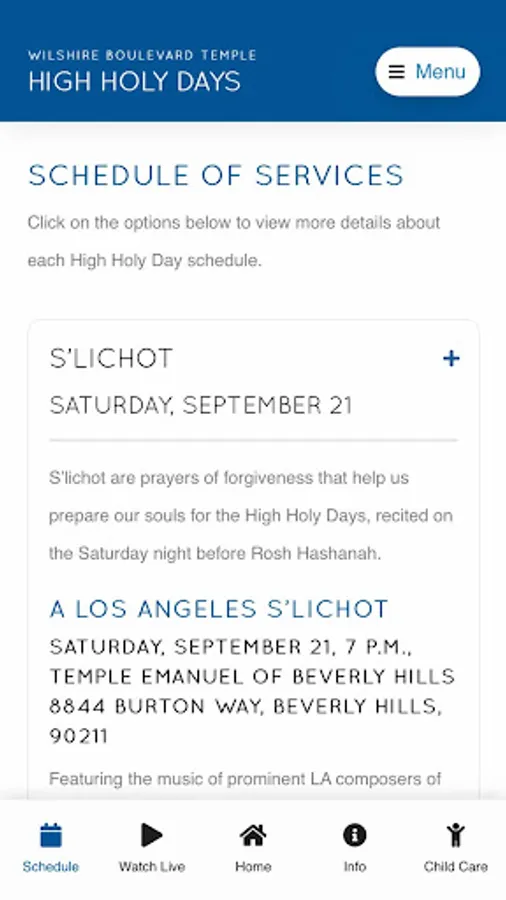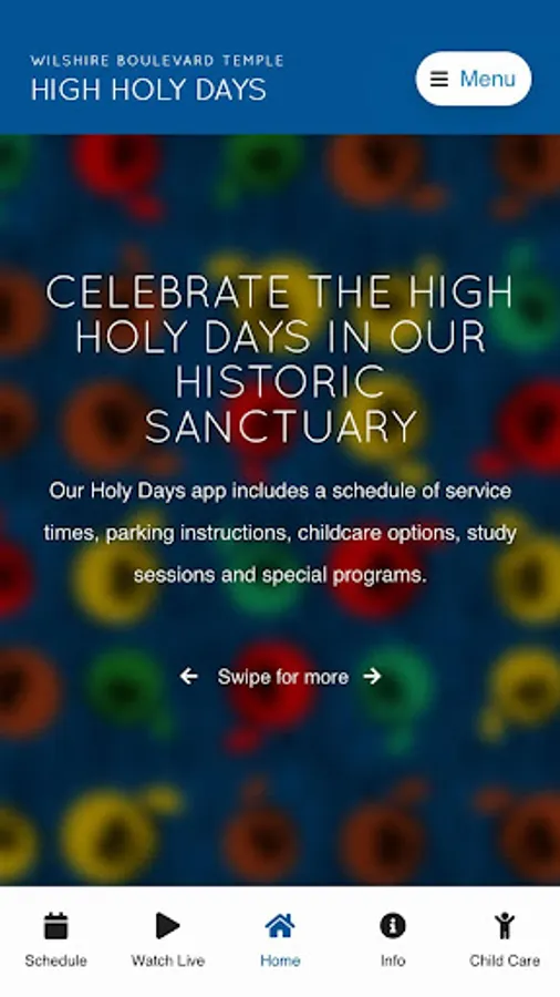 Our High Holy Days App features services times, parking instructions, childcare options, study sessions and special programs.