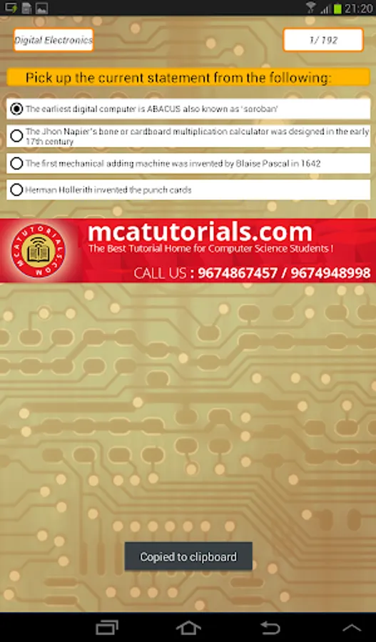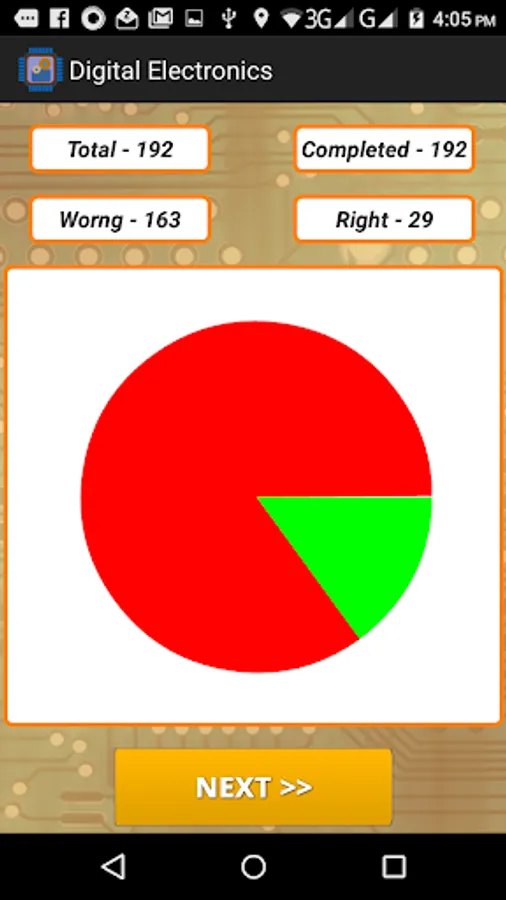 At the end of session , it displays the results with a PIE graph. You can share this result with your friends. If you want to learn more about the subject, the App also has tutorials for FREE. This is a comprehensive tool that prepares you for the Digital Electronics Exam.