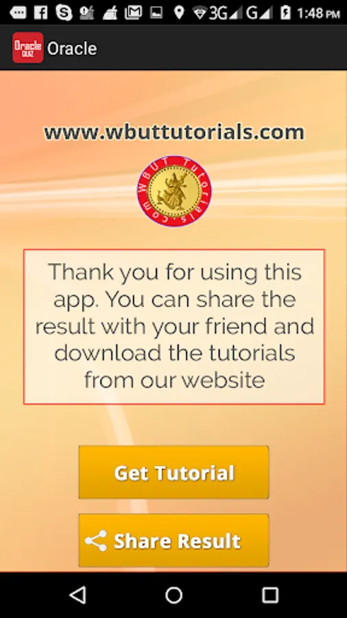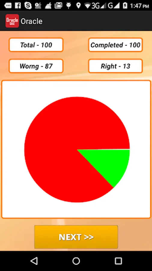 At the end of session , it displays the results with a PIE graph. You can share this result with your friends. If you want to learn more about the subject, the App also has tutorials for FREE. This is a comprehensive tool that prepares you for the Oracle Exam.