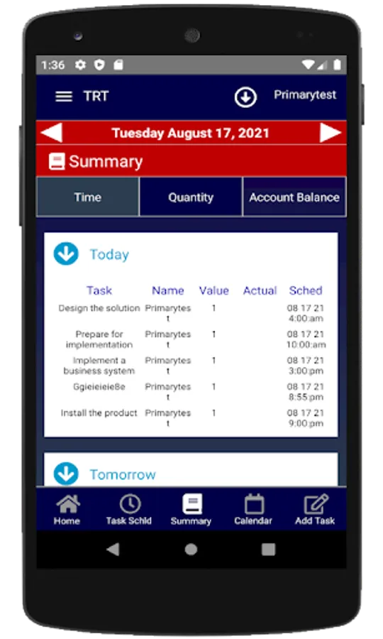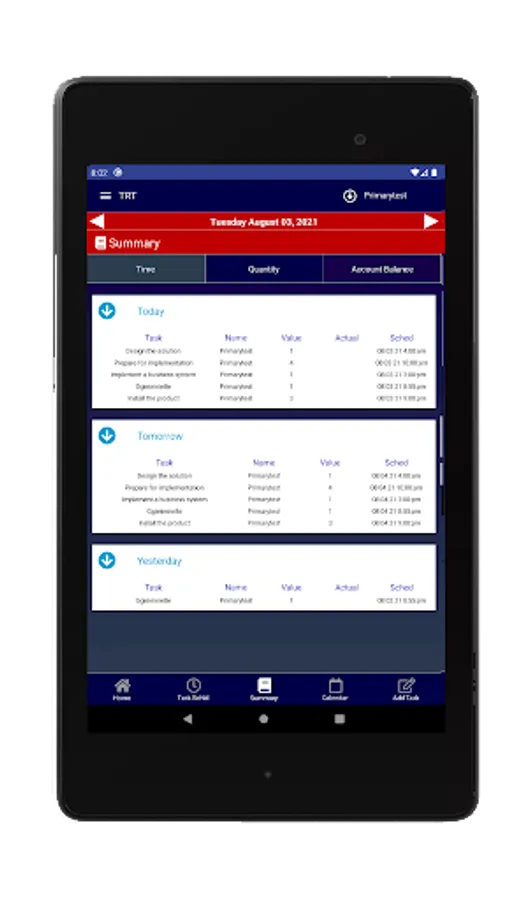 (see all task defined by the Primary user on the TASK page)