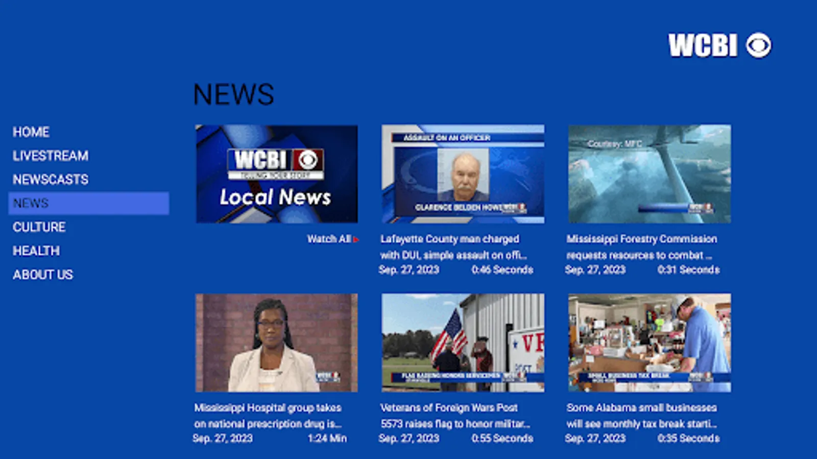 WCBI reaches viewers in Mississippi from Booneville to Philadelphia, west to Grenada, and east to Tuscaloosa County, AL from its downtown Columbus location. Its coverage area includes 721,000 people.