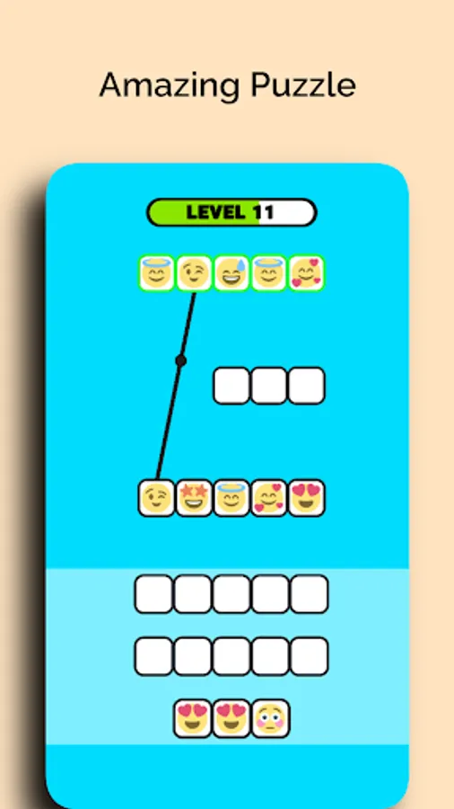 Place the emoji images in the correct slots so that the chains/joins through the line contain the same images.