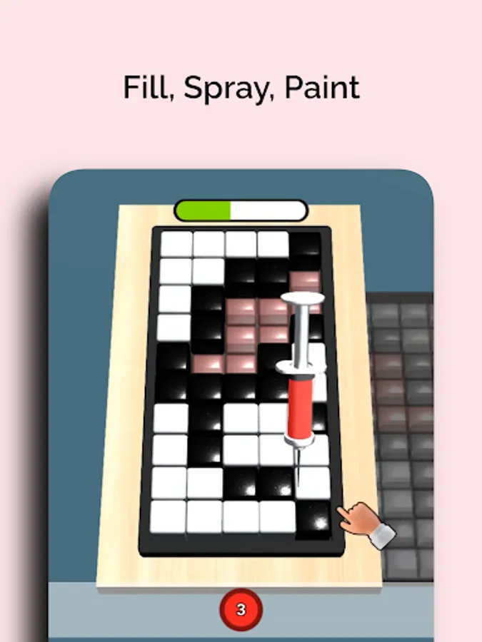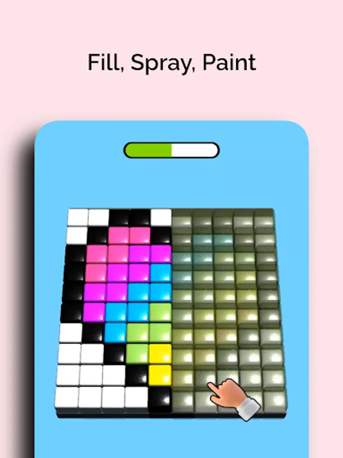 Paint by spraying liquid paint inside the jelly cubes and complete the hidden images.