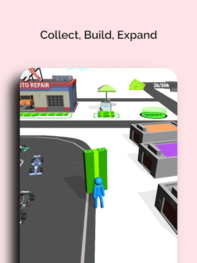 Build your own racetracks and earn money to buy buildings, vehicles and unlock new areas to build your own world.
