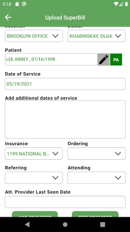 The iSmartBill App has been specifically developed to enter patients and submit electronic superbills very quick and easy.