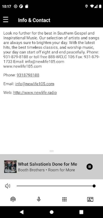 New Life Radio plays the best Southern Gospel music from the artists you love. You'll hear the latest songs from artists such as Greater Vision, Triumphant, Joseph Habedank, Tribute Quartet and so many others as well as classics from the Cathedrals, Imperials, the Happy Goodmans and more. We also air wonderful Christian teaching programs including Focus on the Family Turning Point, In Touch, Insights for Living, Jay Sekulow, and Unshackled, as well as great children's programs like Adventures in Odyssey, the Brinkman Adventures, and the Storybook Room. Listen live 24 hours a day, 7 days a week to WCLC New Life 105 or WGSN New Life 90.7. Enriching, Encouraging, and Inspiring you in your Christian walk.