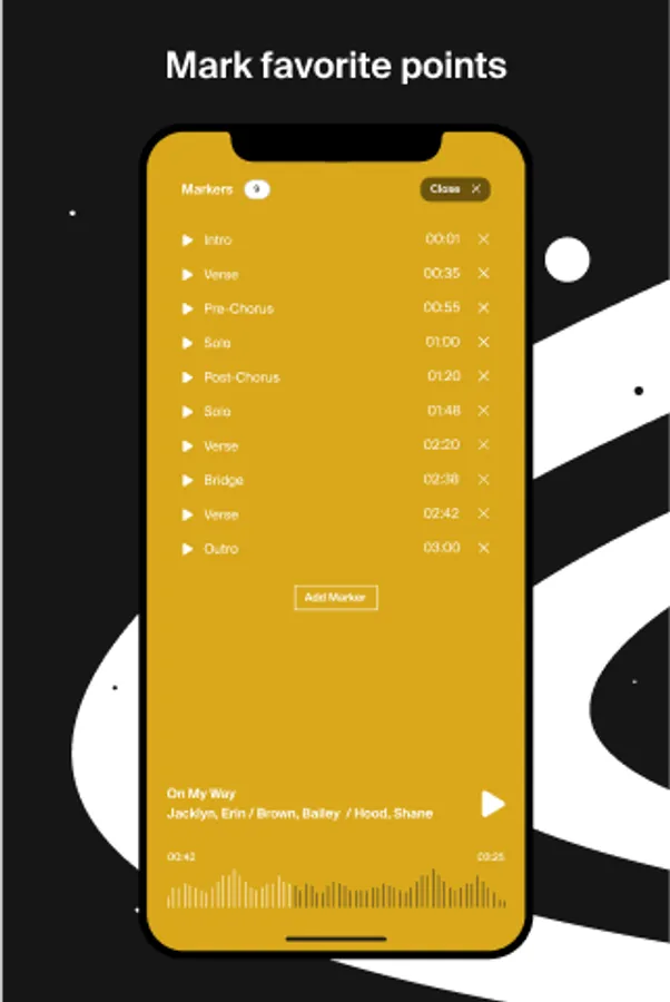 *Add markers to your audio files to denote the locations of Intros, Verses, Choruses, etc.