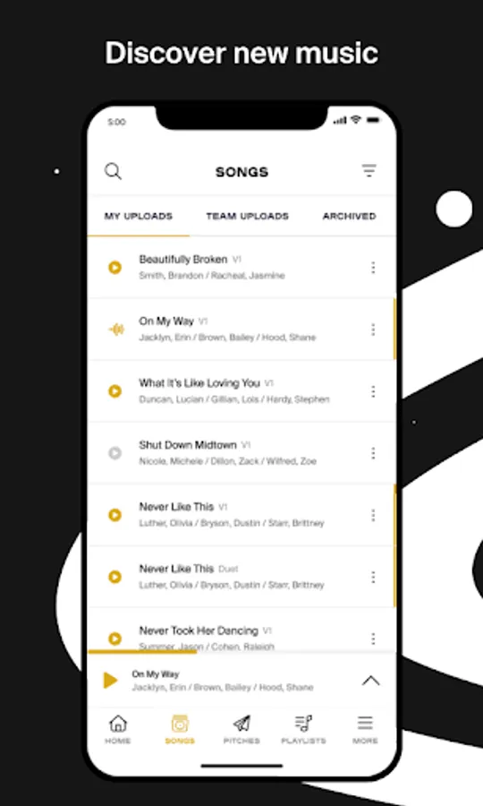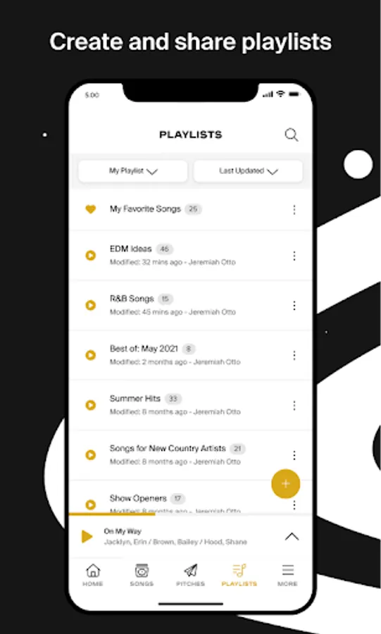 ARROW is a cloud-based global music database for publishers and songwriters that creates a user-friendly mobile app experience which grants users access to manage and listen to demos. ARROW amplifies the ability to support various creative publishing practices including listening to audio, generating playlists to be distributed internally and externally, creating and sending pitches, and tracking cuts, holds, and releases.