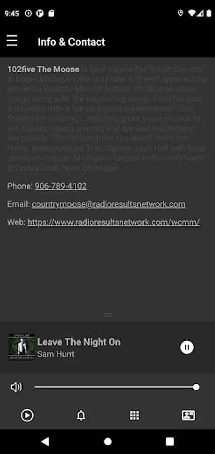 102five The Moose is your source for “Fresh Country” in Upper Michigan! We truly take a “fresh” approach by providing Country Music’s hottest artists and latest songs along with the top testing songs from the past 2 decades with a fun up-tempo presentation. “Your Station for Winning”…regularly gives you a chance to win tickets, music, overnight stays and much more! We provide “The Information You Need” from Fox News, meteorologist Tom Kippen, Jack Hall with local sports and Upper Michigan’s largest radio news team provides local news coverage!